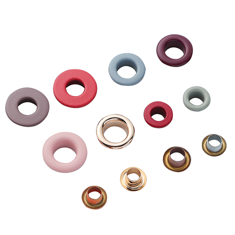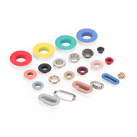 Ojales redondos de metal con logotipo personalizado para prendas de vestir en rojo, azul, amarillo, plateado para zapatos, cortinas, bolsas, accesorios